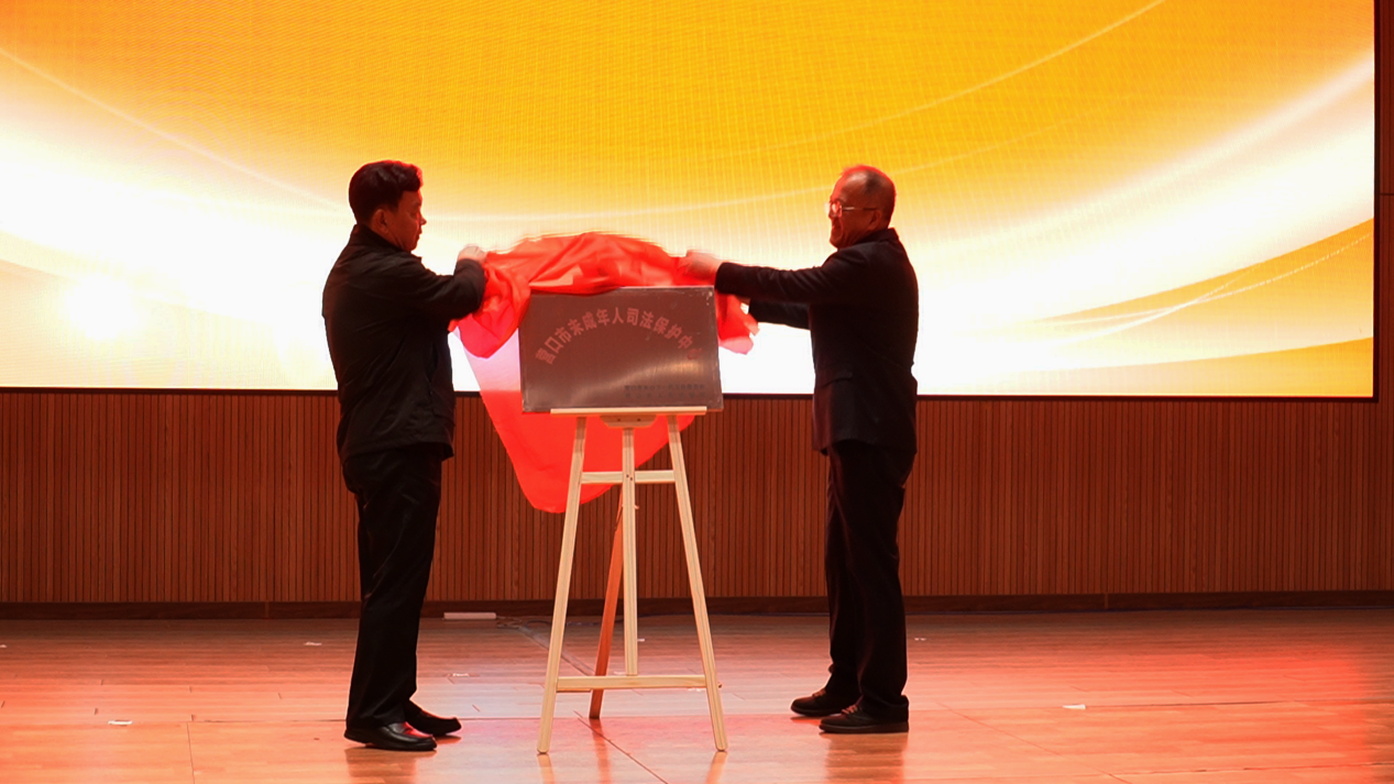 市人民檢察院黨組副書記、分管日常工作的副檢察長(zhǎng)高兵與市關(guān)工委主任王靜春共同為營口市未成年人司法保護(hù)中心揭牌。