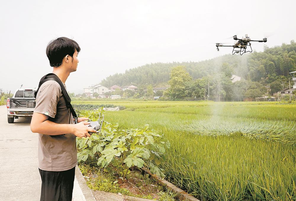 “現(xiàn)在用無人機,每天能完成幾百畝的飛防作業(yè),扣除發(fā)電、無人機折舊等成本,一天收入近1000元。”仙陽鎮(zhèn)鐿杭家庭農場負責人王鐿杭說,他今年23歲,不僅自己種糧,還和其他無人機、收割機、插秧機機手一起,為周邊鄉(xiāng)鎮(zhèn)的種糧大戶提供服務。