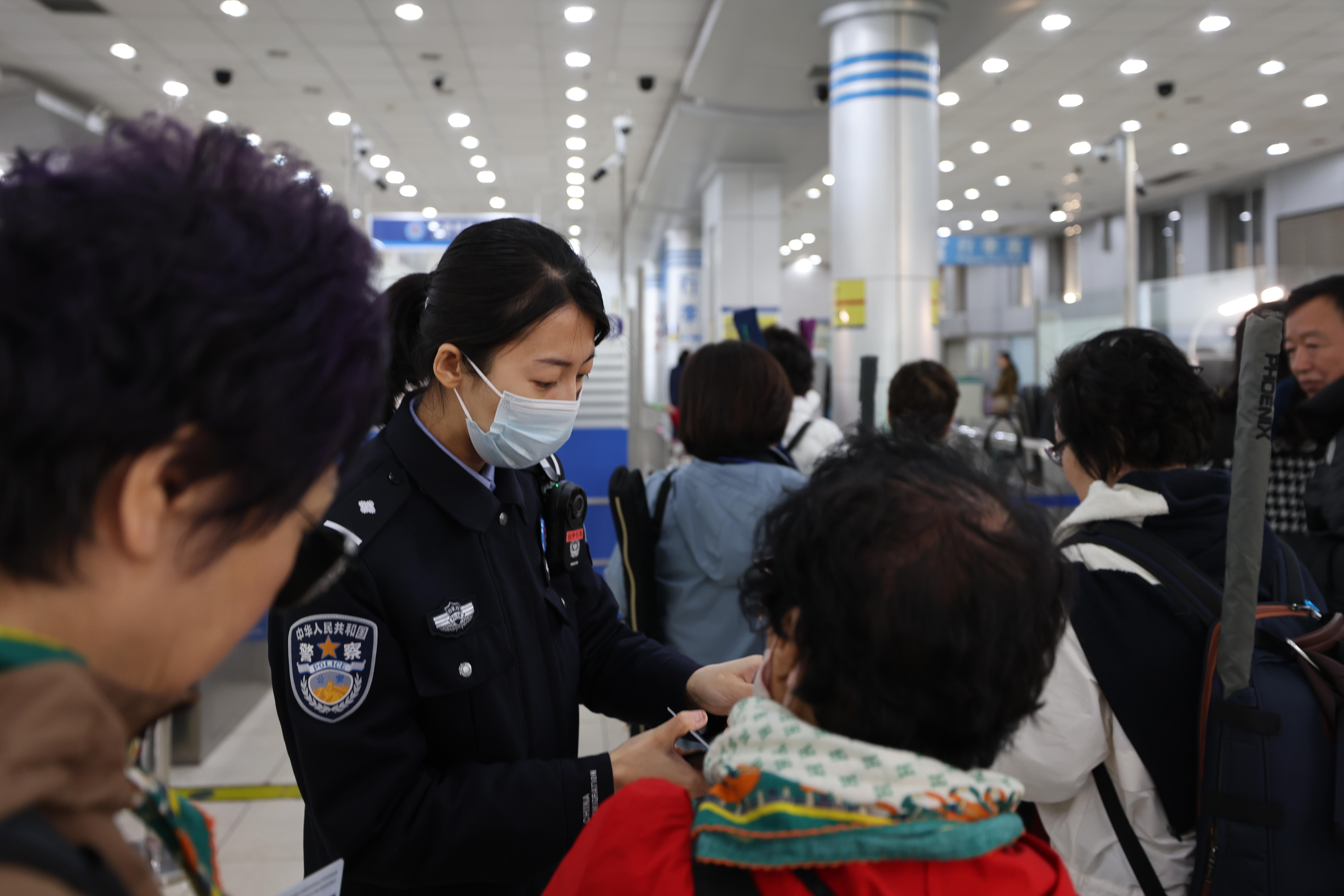 “為全力做好旅行團通關(guān)保障工作,我們邊檢機關(guān)主動靠前服務(wù),第一時間與口岸聯(lián)檢單位、船方及旅行社進行通聯(lián),提前掌握團隊人員信息,協(xié)調(diào)旅行社通過整團分組、多批次、不間斷的方式,組織旅行團成員分批分時抵達口岸通關(guān)現(xiàn)場,確??诎吨刃蚓弧M瑫r增派前臺查驗警力,開足查驗通道,選派精通韓語的民警靠前服務(wù),解決韓國旅客語言溝通不暢、地理位置不熟、政策法規(guī)不清等難題,縮短旅客通關(guān)時長,確保旅客高效快捷通關(guān)?!笔瘝u邊檢站執(zhí)勤一隊教導(dǎo)員慕楠說。