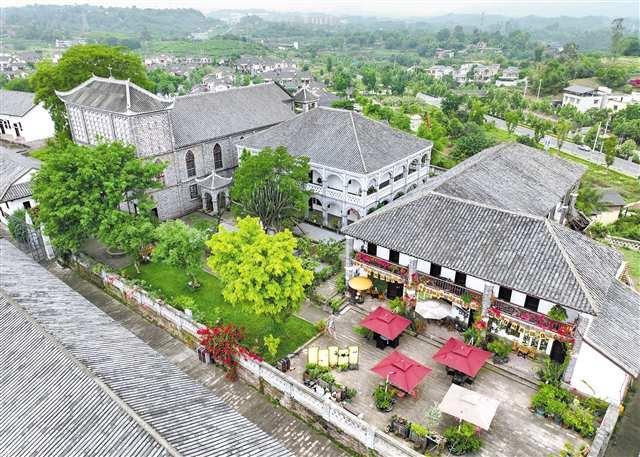 5月7日,九龍坡區(qū)銅罐驛鎮(zhèn)英雄灣村,修繕保護后的文物古跡里開設(shè)起了咖啡店。記者 張錦輝 攝