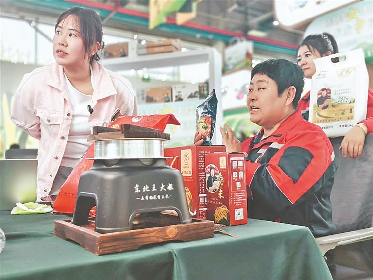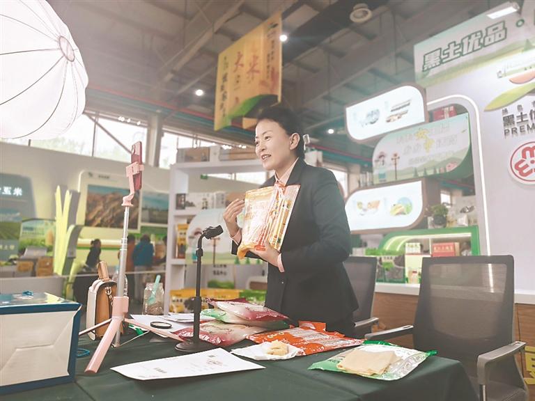 展區(qū)一側(cè),設(shè)立了黑龍江省婦聯(lián)、省農(nóng)投集團(tuán)聯(lián)手打造的“村村女主播 鄉(xiāng)鄉(xiāng)巾話筒”哈洽會(huì)直播帶貨。哈洽會(huì)期間,15位超能女主播火力全開,連續(xù)5天、每天8小時(shí)不間斷帶貨。主播們輪番上陣,將手機(jī)鏡頭化作連通城鄉(xiāng)的金橋。
