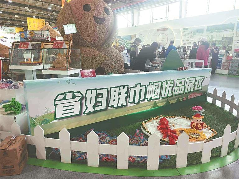走進(jìn)展區(qū)的“龍江巧女”專區(qū),恍若置身于民間藝術(shù)的百花園。在黑龍江省綏棱縣的鉤織展臺(tái)前,百余件毛線編織作品構(gòu)成斑斕的視覺盛宴——憨態(tài)可掬的亞冬會(huì)吉祥物與嬌艷欲滴的玫瑰花相映成趣,高檔別致的毛線制品稻穗鑲嵌在精品透明禮盒中,寓意五谷豐登。這些凝結(jié)著巧思的作品,正是綏棱縣龍妹家政技能培訓(xùn)學(xué)校校長(zhǎng)張琴帶領(lǐng)的“編織娘子軍”的杰作。