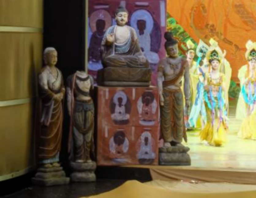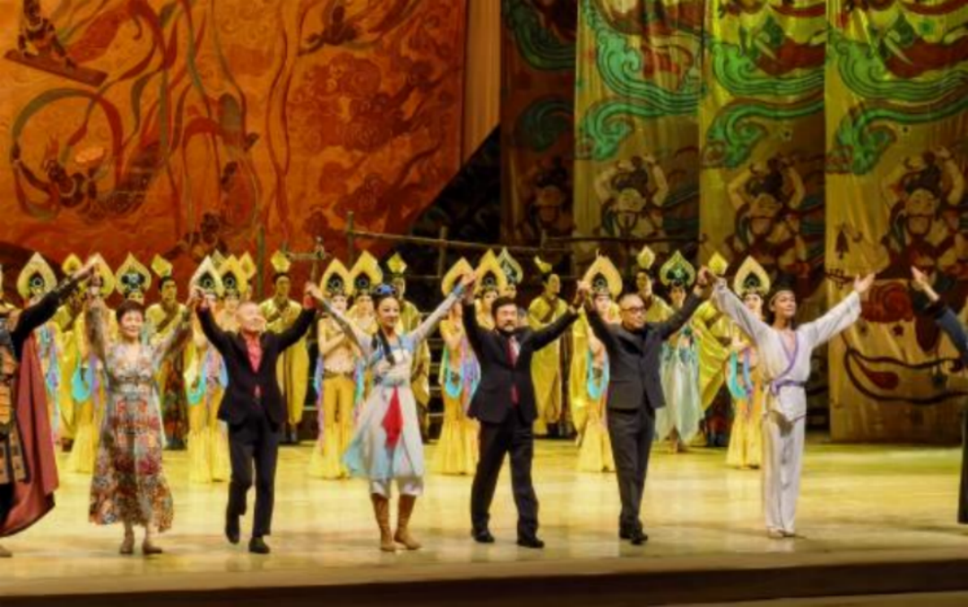 《大夢敦煌》由蘭州歌舞劇院創(chuàng)排,于2000年在京首演,可謂占盡天時(shí)地利人和。當(dāng)其時(shí),上有2019年中央領(lǐng)導(dǎo)視察莫高窟,有力推動(dòng)敦煌文化研究服務(wù)共建“一帶一路”決策;前有甘肅省歌舞劇院于1979年創(chuàng)作的“中國舞劇的里程碑”——舞劇《絲路花語》作標(biāo)桿;后有地方政府大力支持,集一流的制作班底于一身,想不出彩兒都難。