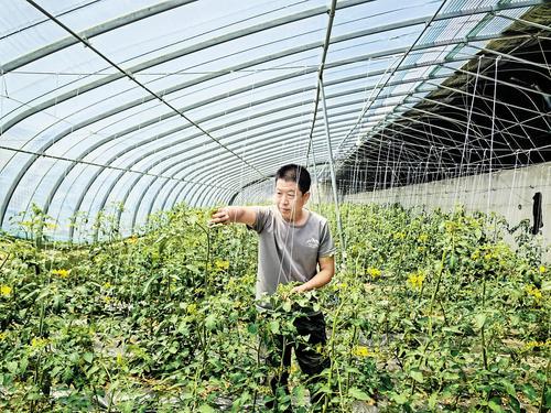 蔬菜大棚產(chǎn)業(yè)的發(fā)展還帶動(dòng)了當(dāng)?shù)卮迕窬蜆I(yè)。村民劉海燕是一座黃瓜種植大棚的老員工,自從黃瓜大棚建成后,她就在此工作?!耙荒昴軖暌蝗f(wàn)五六千元,還能照顧家里,挺知足?!碧崞鹪诩议T(mén)口工作的感受,劉海燕說(shuō)。