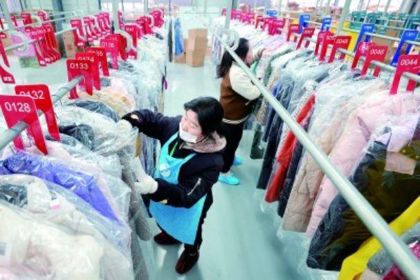 在她身后,數(shù)十臺(tái)清洗設(shè)備同時(shí)運(yùn)轉(zhuǎn),另一側(cè),洗凈消毒后的衣服按照客戶下單平臺(tái)分類掛放,穿行其間,如同走在“叢林”一般?!疤煸絹?lái)越熱,基本上過(guò)了高峰期,高峰期每天收衣在6000件以上?!惫S負(fù)責(zé)人張磊介紹,去年,工廠訂單突破50萬(wàn)件,產(chǎn)值達(dá)450萬(wàn)元,向社區(qū)居民提供80余個(gè)就業(yè)崗位,人均增收3.5萬(wàn)元。