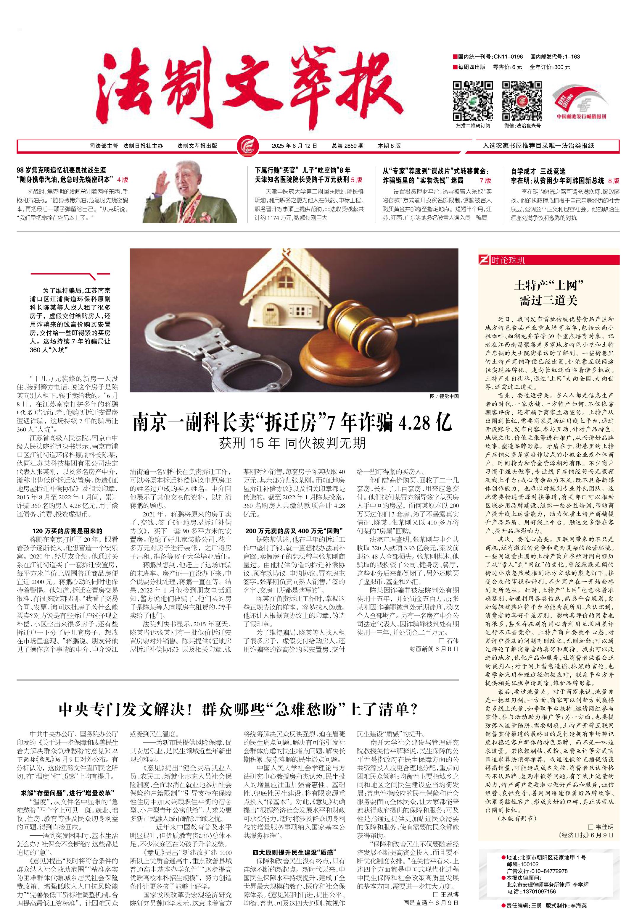 2025年6月12日《法制文萃報》總第2859期1版