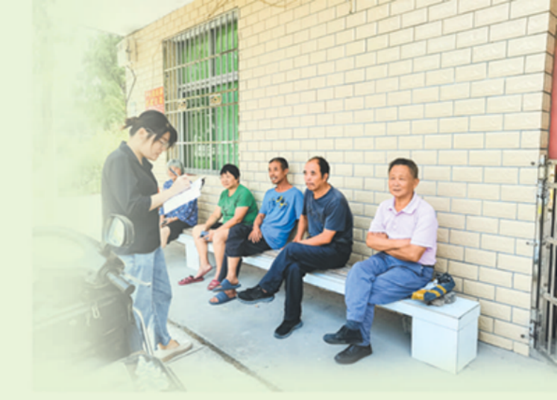 宜春市奉新縣甘坊鎮(zhèn)下村村黨組織書記后備力量鄧怡玲(左一)走村入戶。