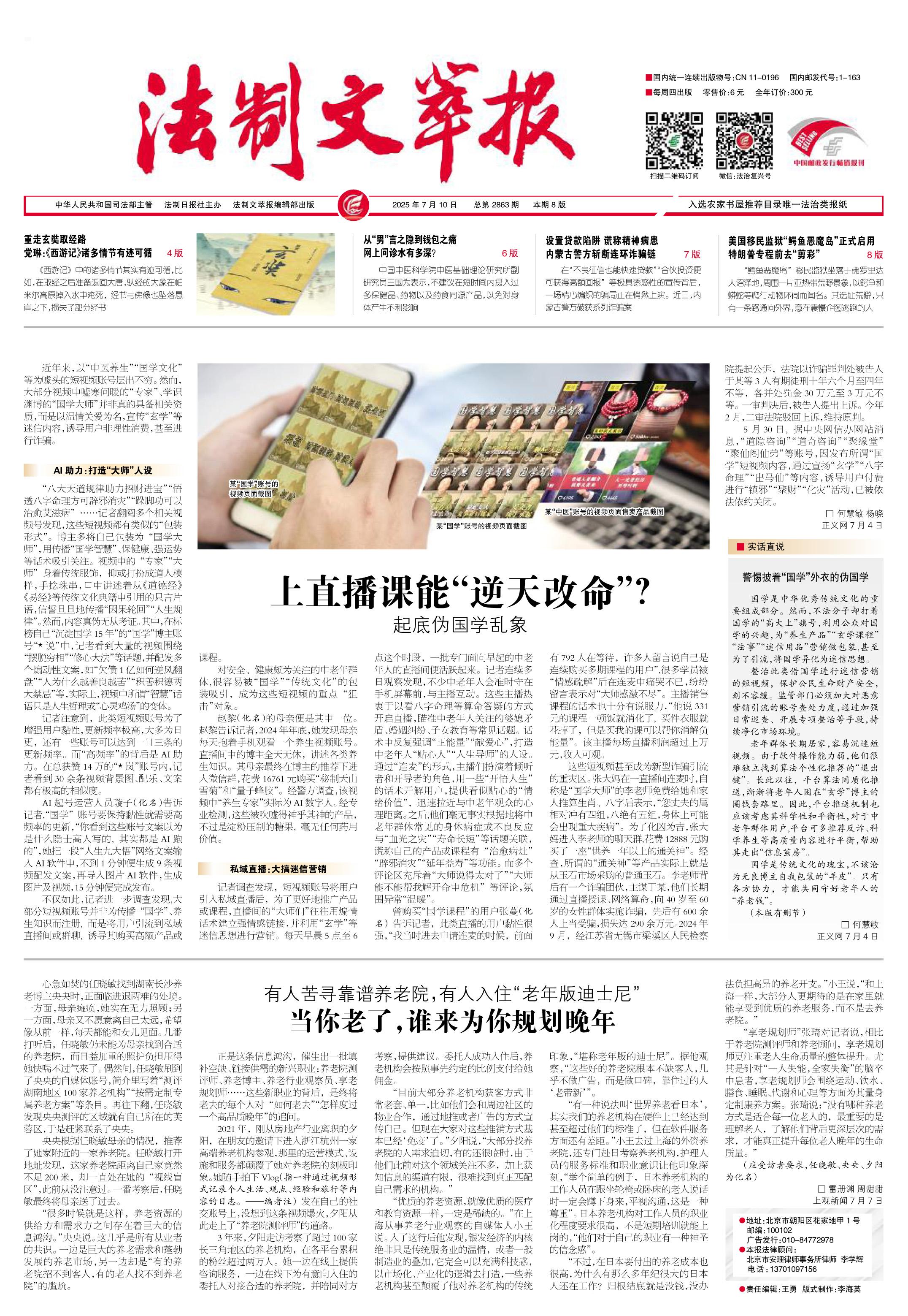 2025年7月10日《法制文萃報》總第2863期1版