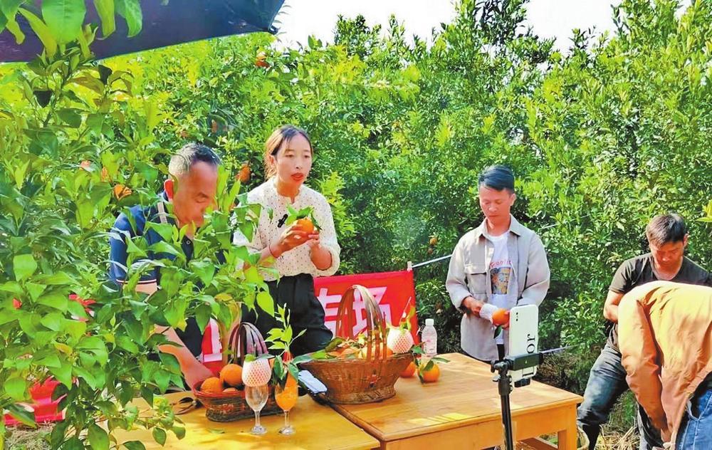 直播團(tuán)隊(duì)在龍陵的果園直播銷售農(nóng)產(chǎn)品。通訊員 宋竹節(jié) 攝
