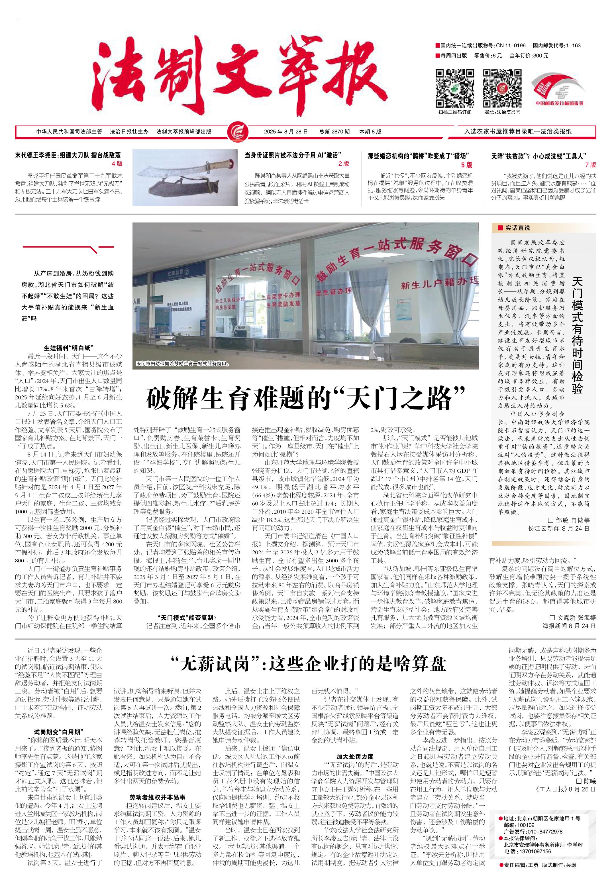 2025年8月28日《法制文萃報》總第2870期1版