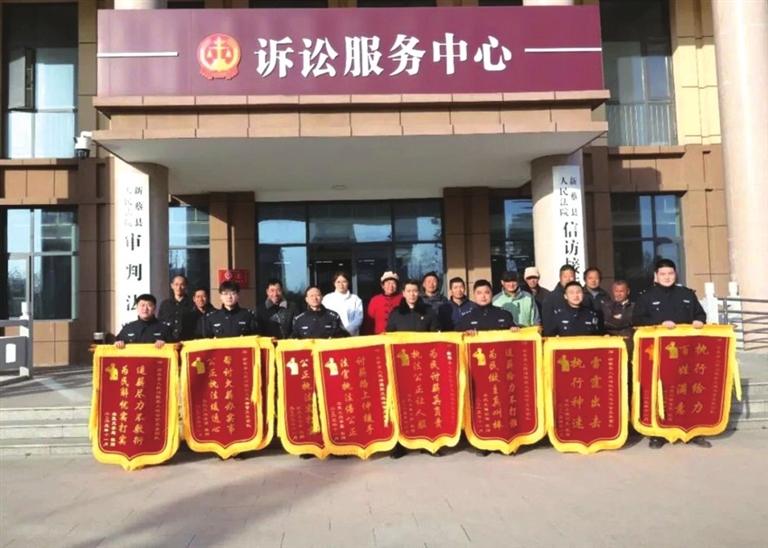 11月26日上午,13名農(nóng)民工代表專程來到新蔡縣人民法院,將十五面錦旗鄭重交到該院執(zhí)行局強(qiáng)制執(zhí)行團(tuán)隊(duì)成員手中。錦旗上的“雷霆出擊、執(zhí)行神速”“執(zhí)行給力、百姓滿意”燙金大字,無聲講述著一個司法為民、雷霆護(hù)“薪”的暖心故事。