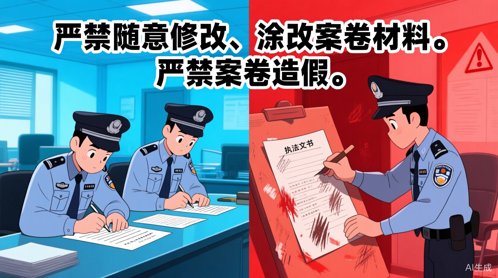 行政執(zhí)法文書應(yīng)當(dāng)制作規(guī)范、要素齊備、表述準(zhǔn)確、字跡清晰。行政執(zhí)法案卷應(yīng)當(dāng)規(guī)范標(biāo)準(zhǔn)、真實(shí)完整。嚴(yán)禁隨意修改、涂改案卷材料。嚴(yán)禁案卷造假。