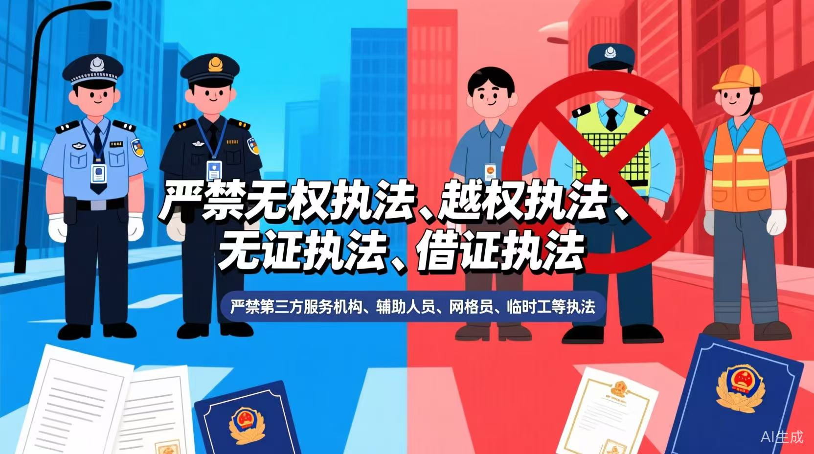 嚴(yán)禁無權(quán)執(zhí)法、越權(quán)執(zhí)法、無證執(zhí)法、借證執(zhí)法。嚴(yán)禁第三方服務(wù)機(jī)構(gòu)、輔助人員、網(wǎng)格員、臨時(shí)工等執(zhí)法。