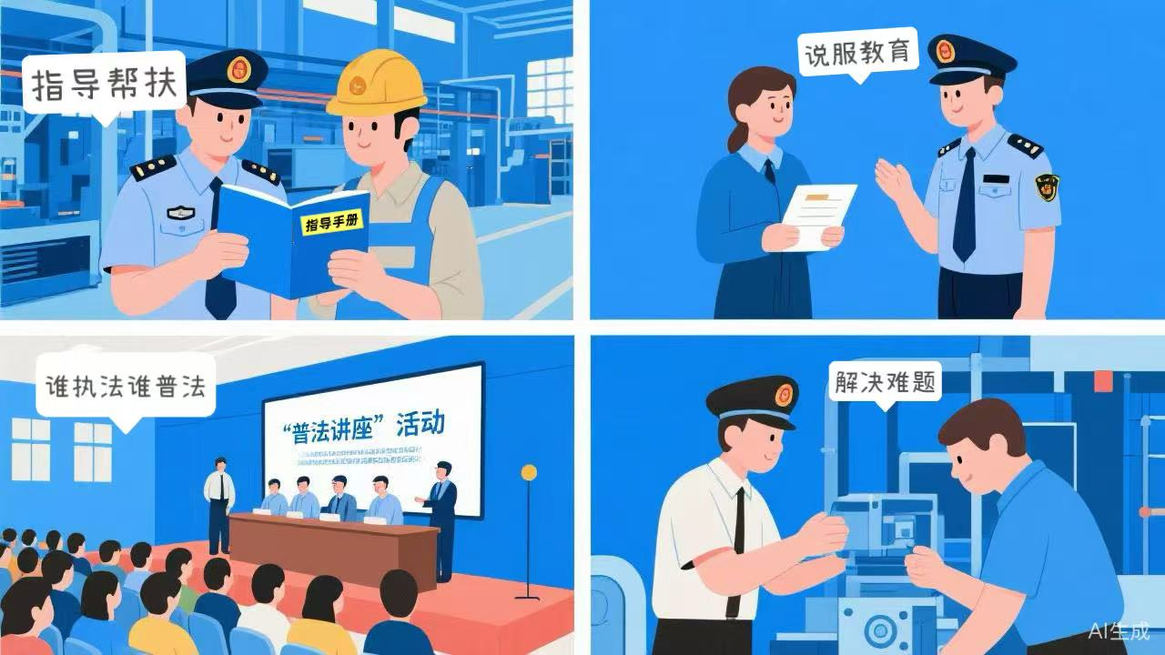 堅(jiān)持精準(zhǔn)執(zhí)法,加強(qiáng)跟進(jìn)幫扶指導(dǎo),綜合運(yùn)用各種管理手段,更多采用說服教育、勸導(dǎo)示范、指導(dǎo)約談、信息披露等方式。落實(shí)“誰執(zhí)法誰普法”普法責(zé)任制,加強(qiáng)釋法說理,認(rèn)真傾聽、耐心解答當(dāng)事人的疑問。嚴(yán)禁干擾企業(yè)的正常生產(chǎn)經(jīng)營(yíng)活動(dòng)。嚴(yán)禁漠視企業(yè)和群眾的合理訴求與實(shí)際困難。嚴(yán)禁簡(jiǎn)單傲慢、避重就輕回應(yīng)社會(huì)關(guān)切。