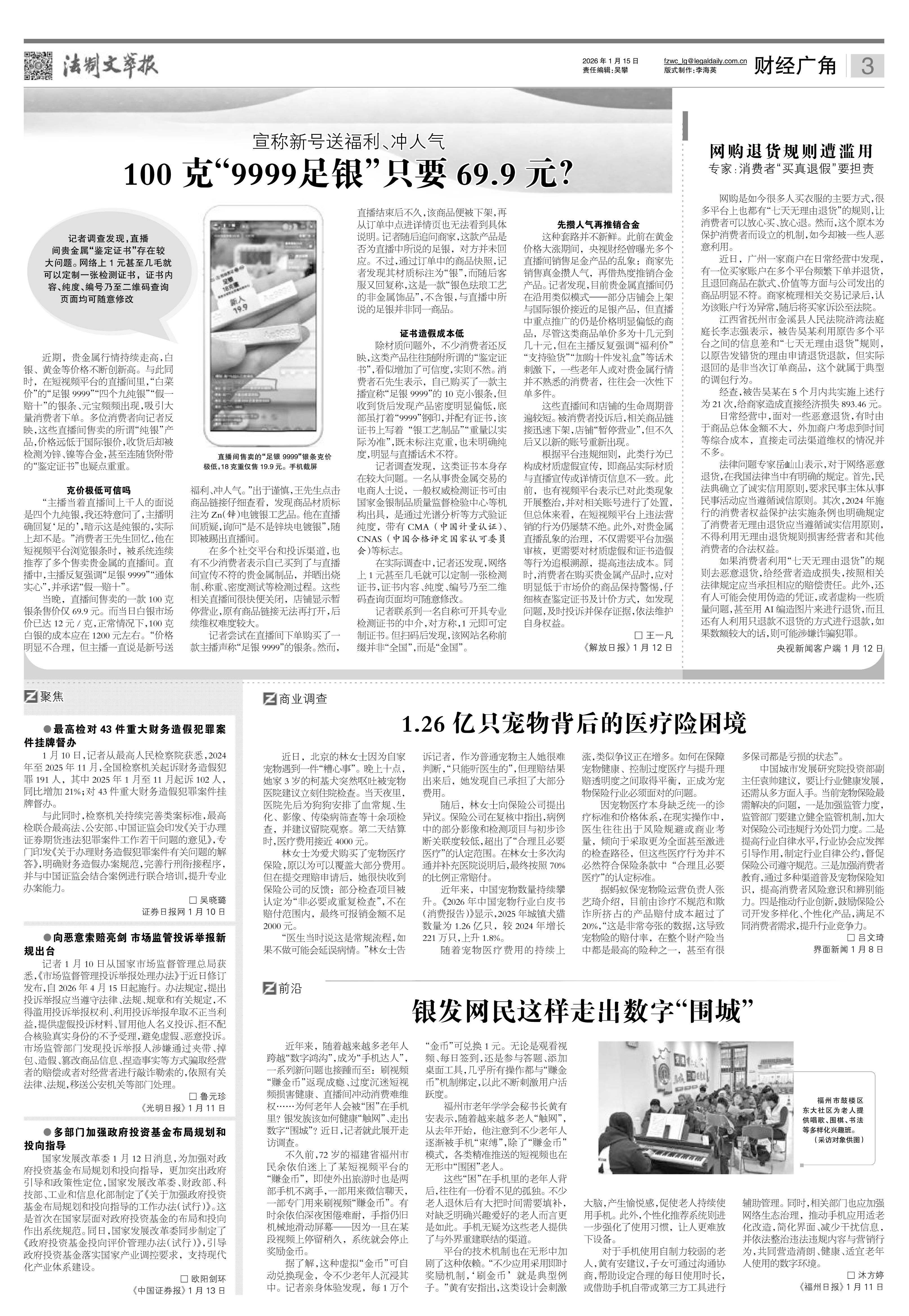 2026年1月15日《法制文萃報》總第2889期3版
