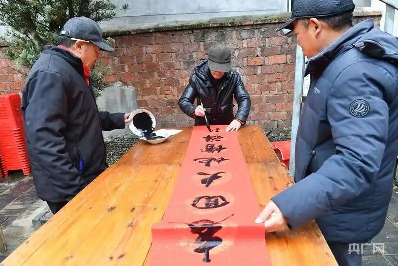 為村民免費(fèi)書寫春聯(lián)(央廣網(wǎng)發(fā) 黃美茜 攝)