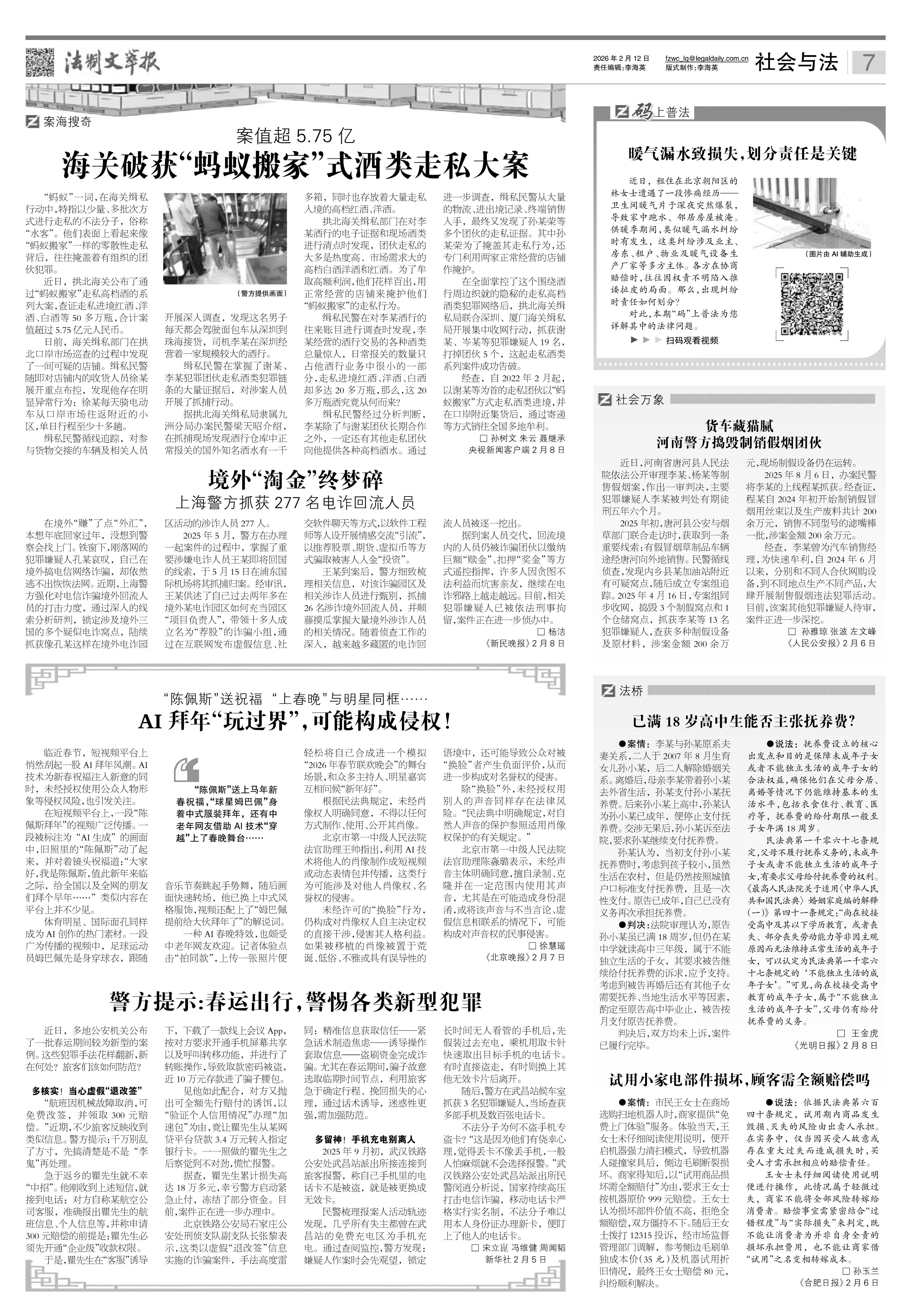 2026年2月12日《法制文萃報》總第2893期7版