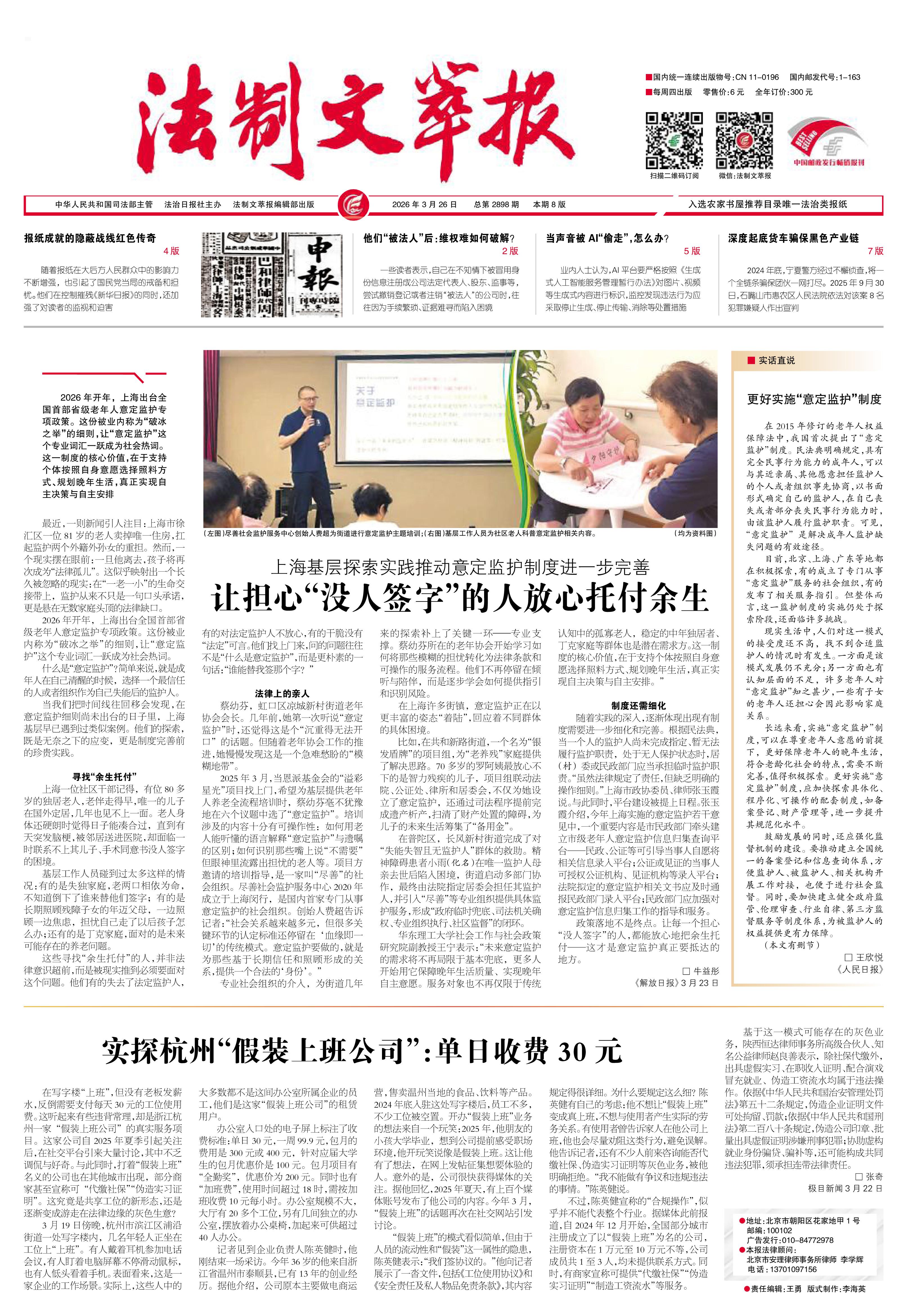 2026年3月26日《法制文萃報(bào)》總第2898期1版