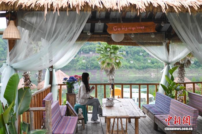 4月13日,走進(jìn)重慶石柱橋頭鎮(zhèn)長沙村,藤子溝水庫波光粼粼,湖畔咖啡館飄香。遠(yuǎn)處,一排排精品民宿立于湖光山色間,游客不時駐足,欣賞濕地公園美景。如今的長沙村,一棟棟老屋被點亮,一個個夢想被點燃,逐步形成了“藝術(shù)一條街”。