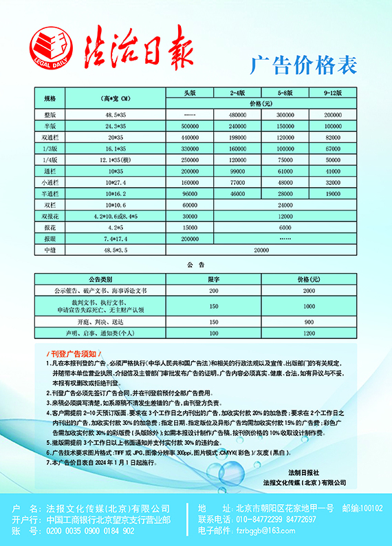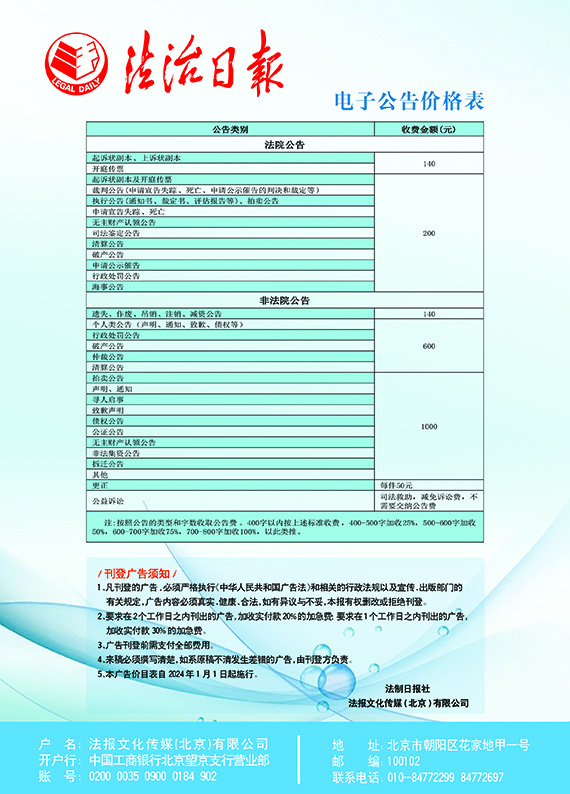 法治日?qǐng)?bào)電子公告價(jià)格表