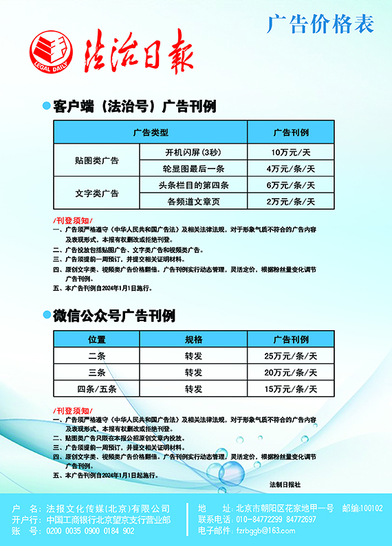 法治日?qǐng)?bào)新媒體廣告價(jià)格表