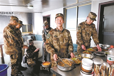 戰(zhàn)士夏夢(mèng)鑫兼任哨所的“大廚”,他喜歡和官兵交流做各地的家鄉(xiāng)菜,把哨所廚房變成了一個(gè)融合東西南北中菜肴的“烹飪學(xué)?!薄?/p>