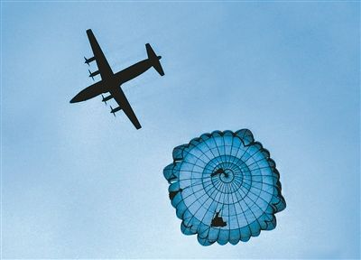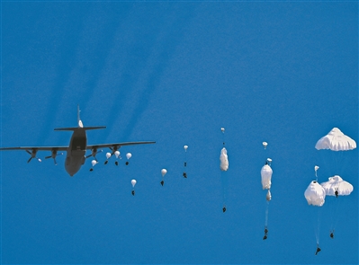 尖兵天降,朵朵傘花綻放蒼穹。