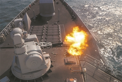 航行途中,編隊各艦雷達相繼發(fā)現(xiàn)空中可疑目標(biāo),官兵立即進入戰(zhàn)斗狀態(tài)。成都艦作戰(zhàn)室內(nèi),鍵盤聲、口令聲此起彼伏?!伴_火!”判明并鎖定目標(biāo)后,艦長果斷下達攻擊命令。