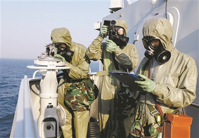 官兵在全防護狀態(tài)下進行實戰(zhàn)化訓(xùn)練。