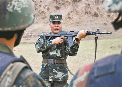 圖為褚旭亮講授射擊技巧。 文志鵬 攝