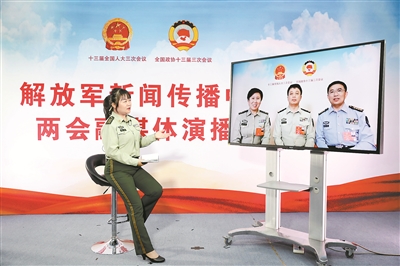 本報記者吳敏通過視頻連線方式采訪軍隊人大代表。蘇鶴 攝
