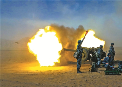 筆者在現(xiàn)場(chǎng)看到,突擊分隊(duì)與炮兵、工化、偵察等多兵種力量密切協(xié)同發(fā)起攻擊,很快突破“敵”前沿陣地。但當(dāng)官兵向縱深推進(jìn)時(shí),“敵”依托堅(jiān)固工事和強(qiáng)大火力建立起第二道防線,進(jìn)攻一度受阻。面對(duì)“敵情”變化,營(yíng)指揮員隨即指令炮兵分隊(duì)實(shí)施打擊。隨著一發(fā)發(fā)炮彈飛向目標(biāo)區(qū),“敵”大部分工事、火力點(diǎn)被摧毀。官兵抓住時(shí)機(jī),快速向“敵”縱深陣地發(fā)起沖擊……