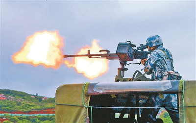 圖②:重機(jī)槍對“敵”實(shí)施火力壓制。