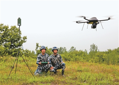 圖④:偵察分隊(duì)操縱無人機(jī)實(shí)施偵察。