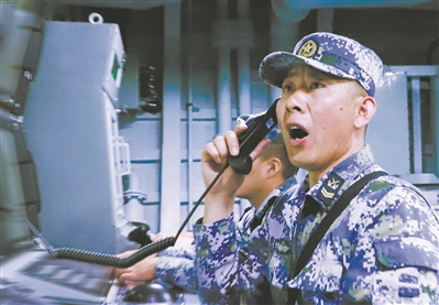 圖②:信陽艦主炮指揮員下達(dá)戰(zhàn)斗指令。