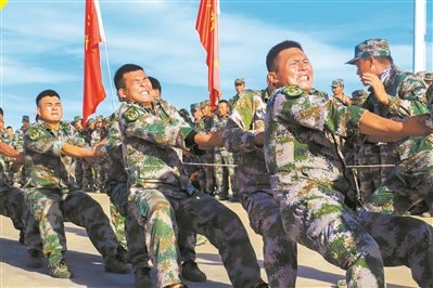 駐訓(xùn)期間,第82集團(tuán)軍某旅組織了“鐵軍杯”軍事體育運(yùn)動會,通過設(shè)置武裝越野、手榴彈投擲、擒拿格斗等比賽項目,激勵廣大官兵勇?lián)鷱?qiáng)軍重任、爭做時代尖兵。圖為該旅官兵正在進(jìn)行拔河比賽。
