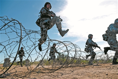 圖②:學(xué)員沖向“藍(lán)軍”陣地。