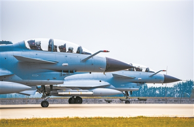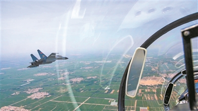 “發(fā)現(xiàn)目標(biāo),按攻擊隊(duì)形攔截!”正在某空域巡邏的長機(jī)飛行員殷凡明發(fā)現(xiàn)“敵”機(jī),迅速協(xié)同僚機(jī)飛行員張瑋前出攔截,一場空中戰(zhàn)斗隨即打響。