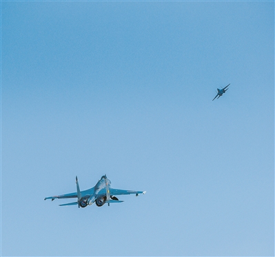 晴空萬里,空軍航空兵某團(tuán)多架戰(zhàn)鷹呼嘯而起,進(jìn)行自由空戰(zhàn)對(duì)抗演練。