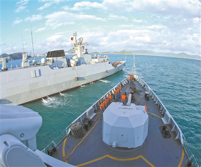 初冬時節(jié),南海某海域波濤奔涌,戰(zhàn)艦馳騁,南部戰(zhàn)區(qū)海軍某護(hù)衛(wèi)艦支隊艦艇全訓(xùn)合格考核正在進(jìn)行。