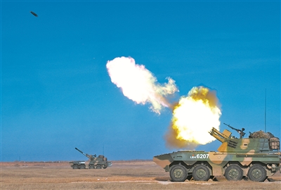 聯(lián)演聯(lián)訓(xùn),體系作戰(zhàn)。紅方偵察分隊(duì)發(fā)現(xiàn)“敵”裝甲集群,指揮部隨即通過無人機(jī)等偵察裝備,引導(dǎo)空中打擊力量對“敵”目標(biāo)實(shí)施火力打擊。與此同時(shí),紅方炮兵群對“敵”前沿陣地進(jìn)行破壞射擊,并依托信息系統(tǒng)實(shí)時(shí)評估毀傷效果,及時(shí)調(diào)整打擊方案,精準(zhǔn)摧毀“敵”裝甲、碉堡等目標(biāo)。