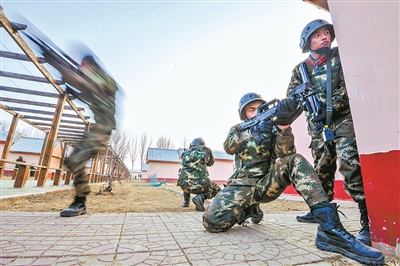 演訓(xùn)場上,其他演練課目接連展開,砥礪官兵實(shí)戰(zhàn)能力。某大隊(duì)?wèi)?yīng)用激光模擬對抗系統(tǒng),組織紅藍(lán)對抗;排爆分隊(duì)設(shè)置復(fù)雜現(xiàn)場環(huán)境,排除“人質(zhì)”身上捆綁的“爆炸物”;偵察分隊(duì)實(shí)施抵近偵察,開展突入房屋訓(xùn)練……