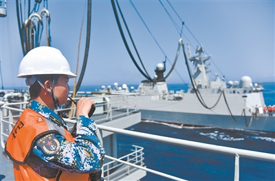 “命令你艦前往某海域,為衡水艦進行油水補給!”處置完浮雷險情,青海湖艦又接到新的命令。官兵立即調(diào)整航向,向目標海域高速機動。抵達后,一系列海上補給作業(yè)緊張有序展開,兩艦之間凌空架起承載索,建立補給連接,順利完成補給任務。