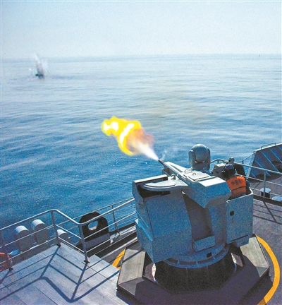 艦炮對浮雷進行射擊。