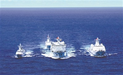 接到指令,準(zhǔn)備接受補(bǔ)給的3艘艦船加速前出占領(lǐng)補(bǔ)給陣位,與補(bǔ)給艦查干湖艦組成“兩橫一縱”補(bǔ)給隊(duì)形。與此同時(shí),艦載直升機(jī)迅速升空,協(xié)同衡陽艦擔(dān)負(fù)編隊(duì)警戒任務(wù)。