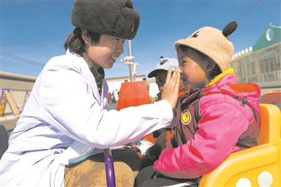 巡診隊(duì)員為小朋友涂抹高原護(hù)膚霜。