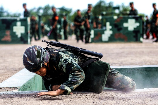 在現(xiàn)場(chǎng)組織訓(xùn)練的中隊(duì)長(zhǎng)吳野說(shuō),雖然這些訓(xùn)練課目軍事訓(xùn)練大綱并沒(méi)有明確要求,但卻是反恐實(shí)戰(zhàn)中的必殺絕技。