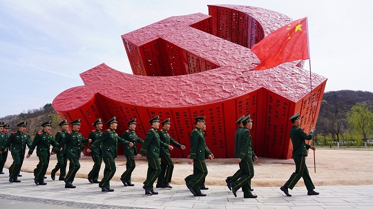 圖為武警延安支隊(duì)執(zhí)勤一中隊(duì)官兵開(kāi)展主題黨日活動(dòng)。 黨鵬鑫 攝