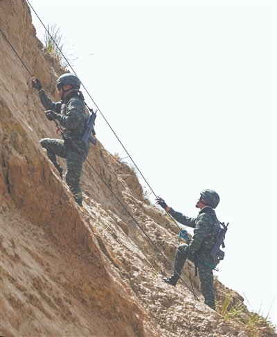 上午9時許,接到3名“暴恐分子”藏匿某地的“敵”情通報后,官兵全副武裝快速出動。到達預定地域后,官兵隨即展開戰(zhàn)斗隊形,偵察組利用無人機、遠程望遠鏡等設備展開偵察;狙擊組快速占領制高點,尋找最佳狙擊點位;突擊組進入戰(zhàn)斗準備,隨時待命投入捕殲戰(zhàn)斗……