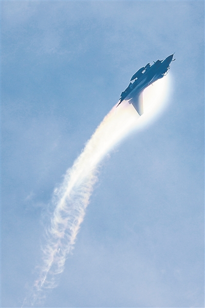 完成打擊任務(wù)后,戰(zhàn)機(jī)迅速躍升,直插云霄。